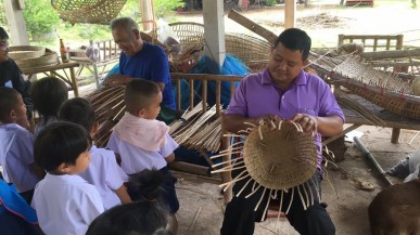 นายบุญส่ง พัตรา ผู้ใหญ่บ้านป่าโมงใหญ่ หมู่ ๑ ปราชญ์ด้านงานจักสาน (ผลิตภัณฑ์จากไม้ไผ่) ได้ริเริ่มก่อตั้งกลุ่มงานจักสาน หัตถกรรม ในปี พ.ศ.๒๕๖๐ เพื่อให้คนชุมชนใช้เวลาว่างให้เกิดประโยชน์ มีส่วนร่วม สร้างอาชีพ สร้างรายได้ให้คนในชุมชน โดยใช้วัสดุที่มีในชุมชนให้เกิดประโยชน์ และเมื่อมีงานบุญประจำปี ก็จะทำเครื่องจักสาน หัตถกรรม ถวายให้วัดเพื่อทำบุญ และได้รับความร่วมมือจากคนในชุมชนเป็นอย่างดี